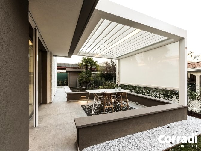 Уявіть, що ви можете керувати погодою на терасі. Звучить як фантастика, але цю можливість надає біокліматична пергола. Основа її конструкції – mdash; це дах, що складається з алюмінієвих ламелей, які можуть повертатися довкола своєї осі. Управління цим механізмом, як правило, автоматизоване та здійснюється за допомогою пульта, настінного перемикача або навіть зі смартфона.